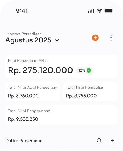 Pantau jumlah dan nilai persediaan secara real-time. Catat setiap pergerakan stok agar bisnis terhindar dari kekurangan barang atau selisih pencatatan.