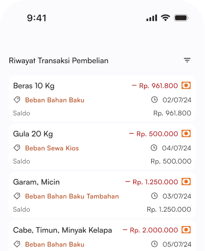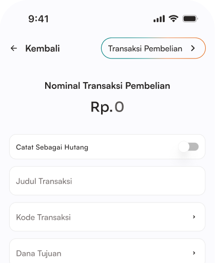 Input transaksi pembelian hanya dalam beberapa langkah. Semua data tersimpan otomatis sehingga Anda tidak perlu mencatat ulang transaksi yang terlewat.