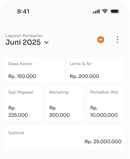 Catat setiap transaksi pembelian secara rapi dan terstruktur. Pantau biaya operasional dan kelola hutang supplier agar arus kas tetap sehat dan bisnis lebih terkendali.